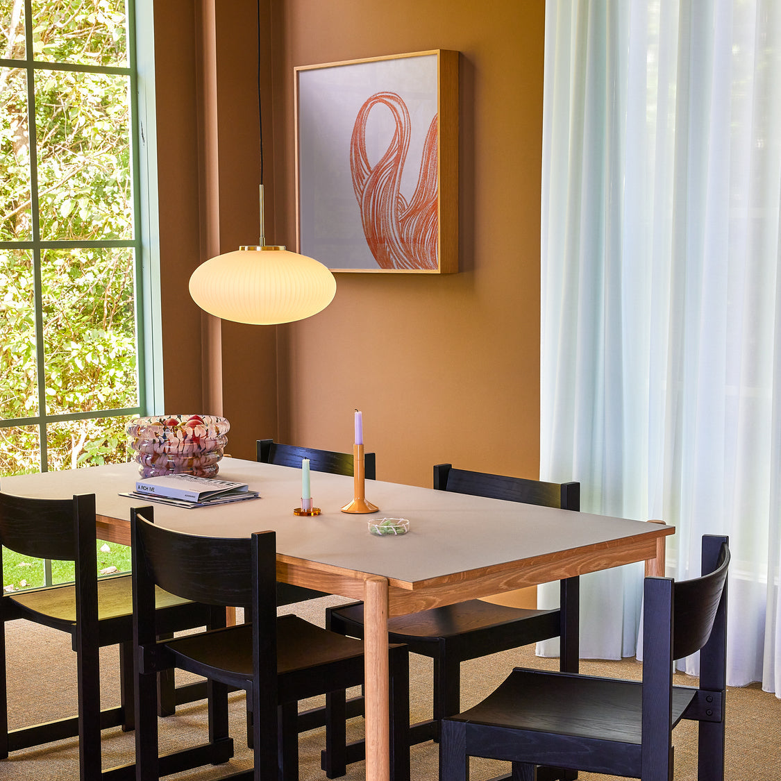 This frame combines natural oak veneer with modern plexiglass, creating a beautiful balance between tradition and modernity. Its generous 80 × 80 cm format adds depth to your wall and creates a subtle three-dimensional visual effect. The integrated curved-line illustration brings a playful, artistic touch without overwhelming the space.