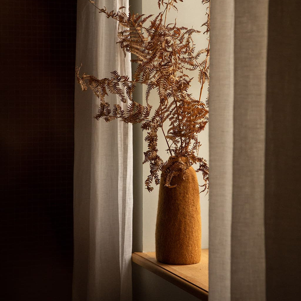 Inspired by the natural harmony of colors, MUSKHANE created the Cloche vase cover to play with materials and greenery: wool felt, foliage, or flowers. It allows you to create as many harmonious combinations as there are shades in nature!