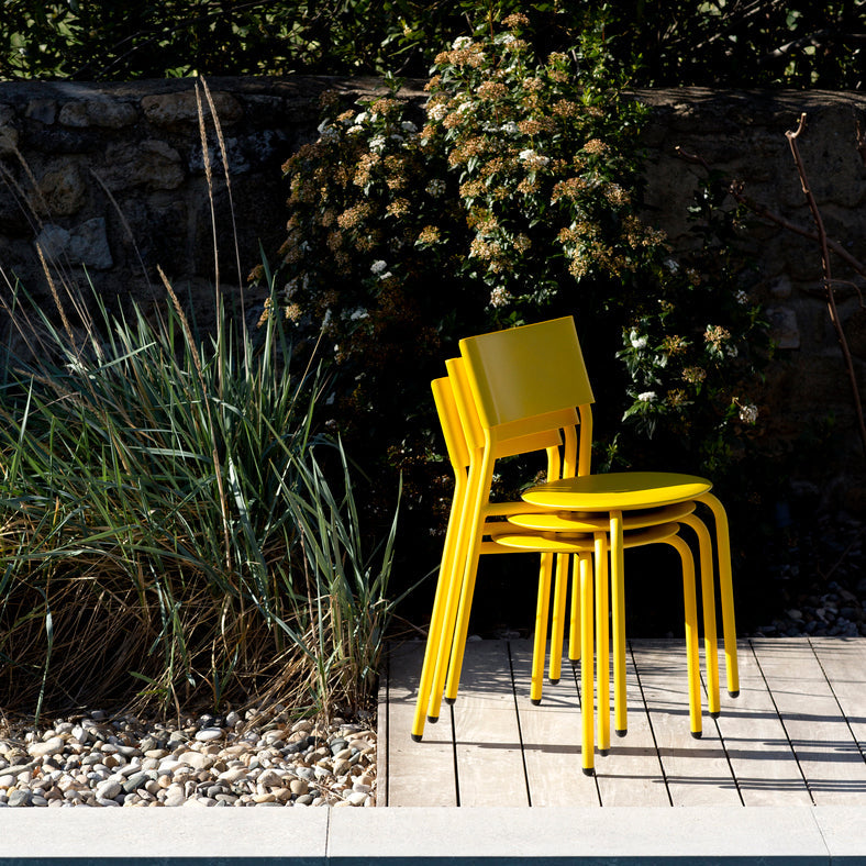 Issue de la gamme SSD, la chaise de jardin SSDr en plastique recyclé reprend les codes esthétiques et ergonomiques de ses consœurs, tout en utilisant des matériaux durables adaptés à une vie en extérieur.