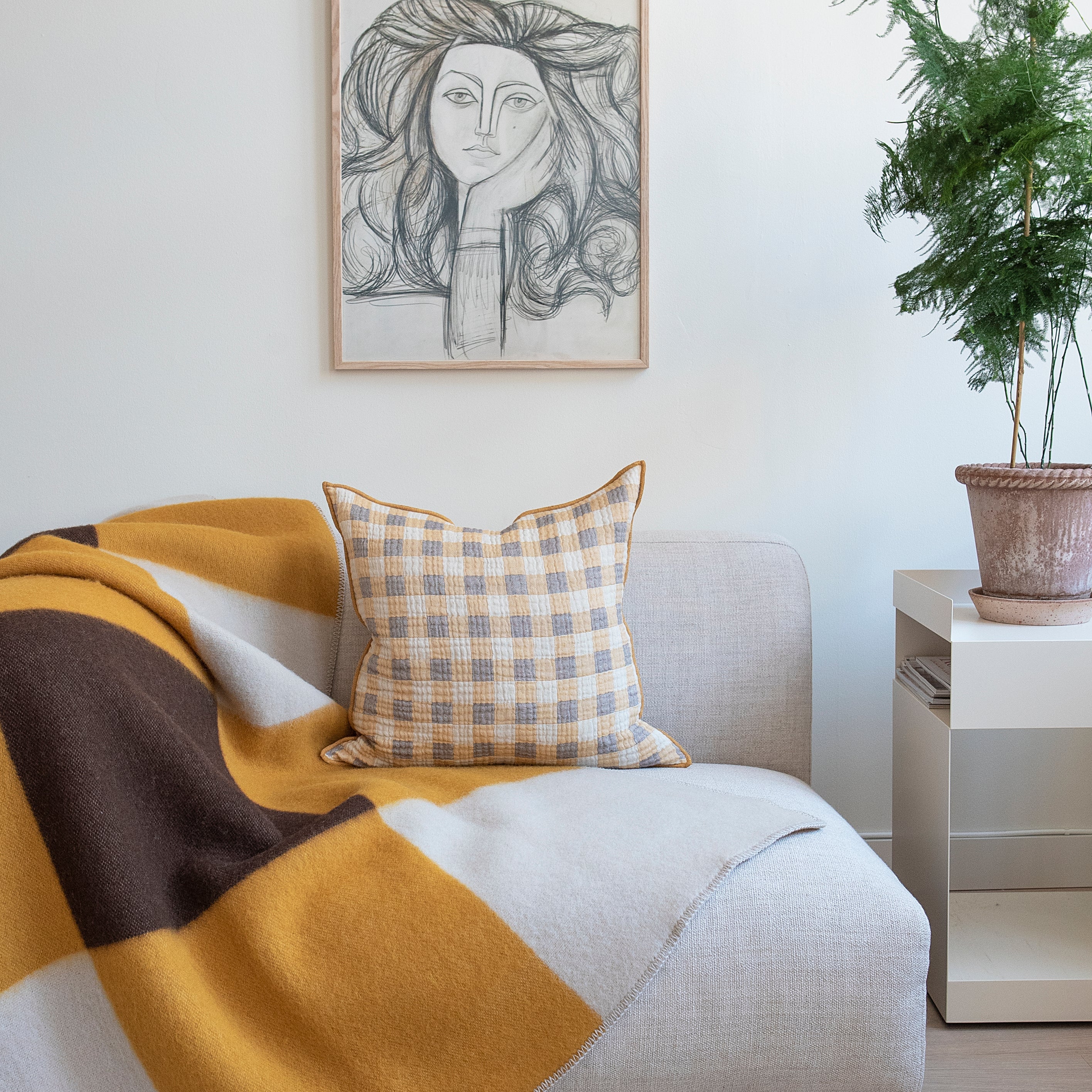 Tissée avec soin en Lituanie à partir de laine d’agneau de Nouvelle-Zélande, cette couverture allie chaleur et légèreté. Sa texture moelleuse et son élégante surpiqûre en font un indispensable pour créer une atmosphère douce et enveloppante.